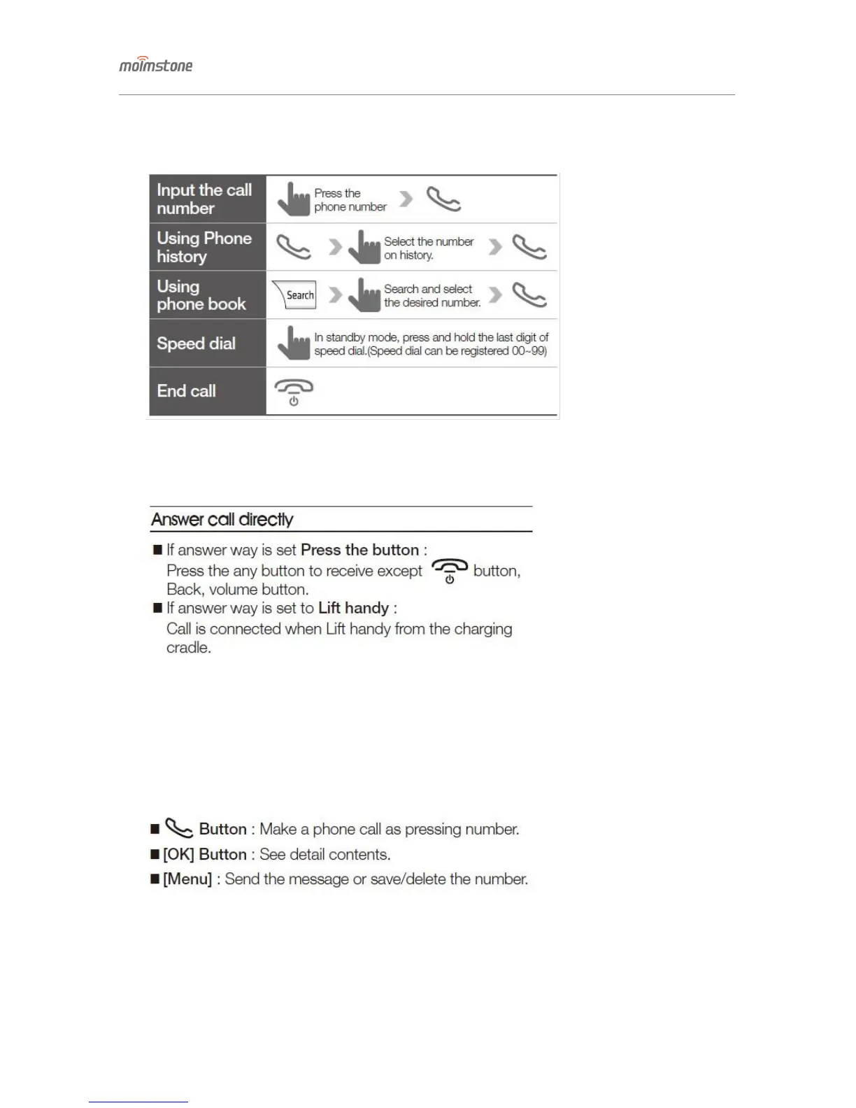 Moimstone mwp1100a - Making and Ending a Call; Answer a Call; Call History