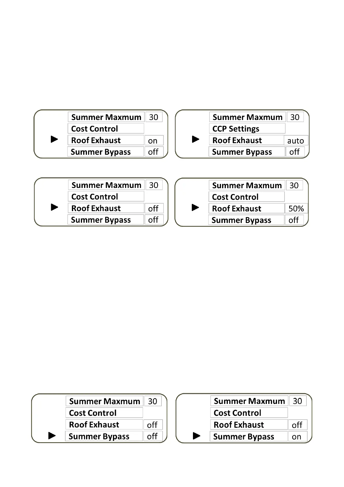For the Roof Cavity Exhausng there are four selecons of operaon.