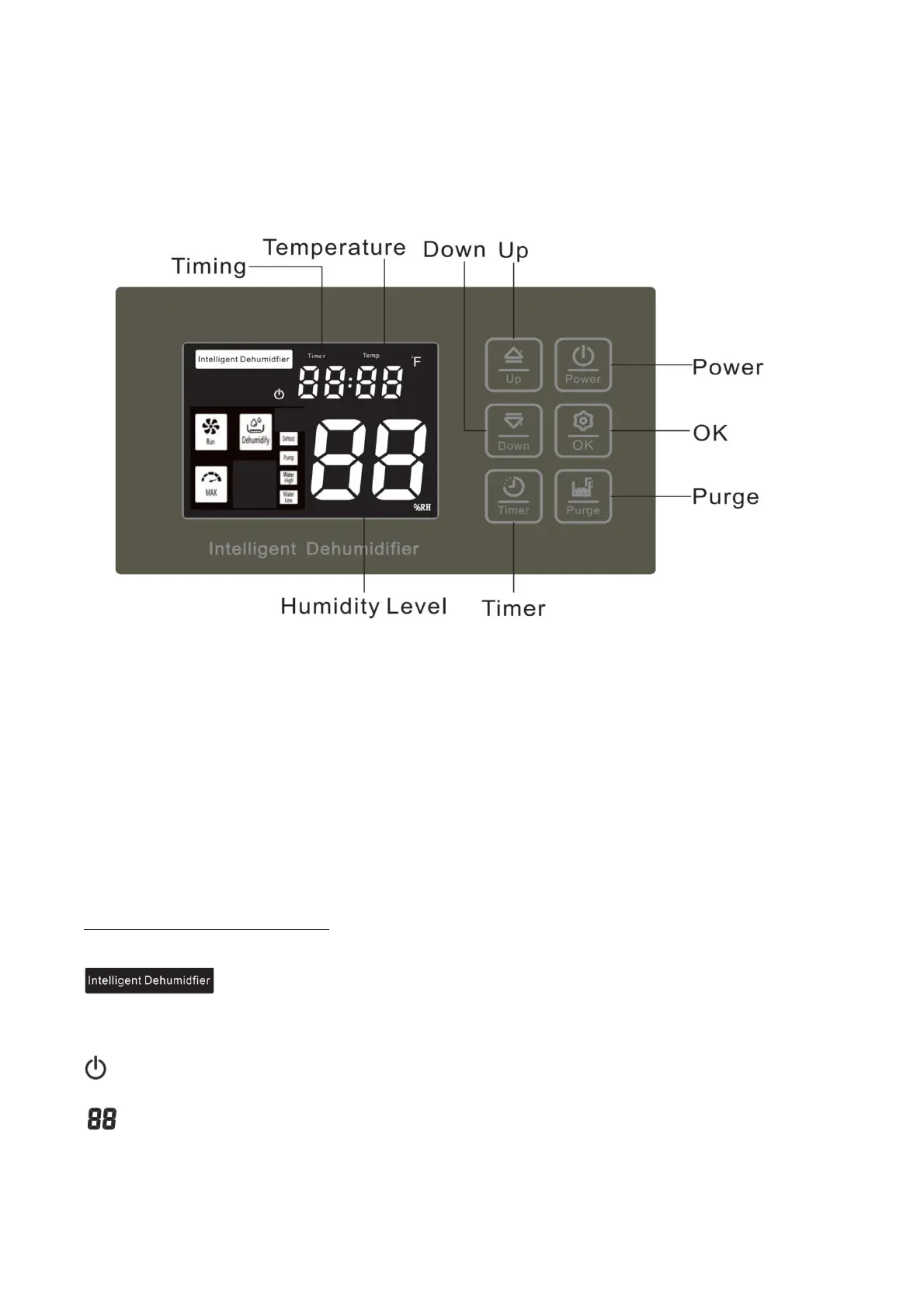 Power Button: Press this button to turn on/ off the dehumidifier.
