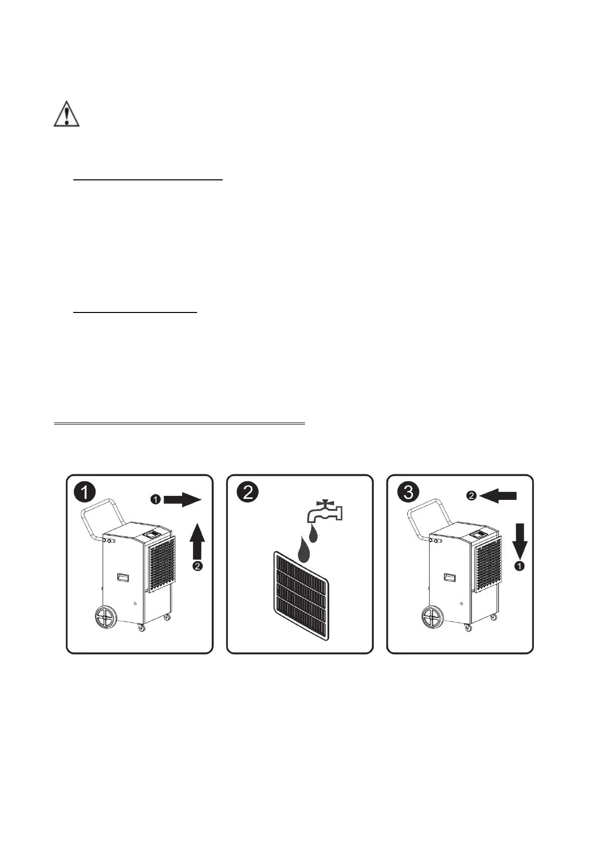 the dehumidifier or control panel. Water may damage the electronic components of the