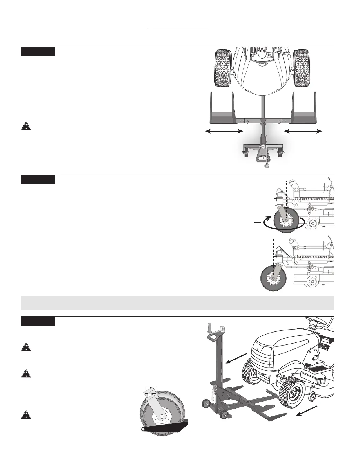 • Drive or roll the mower onto the Wheel Pads.
