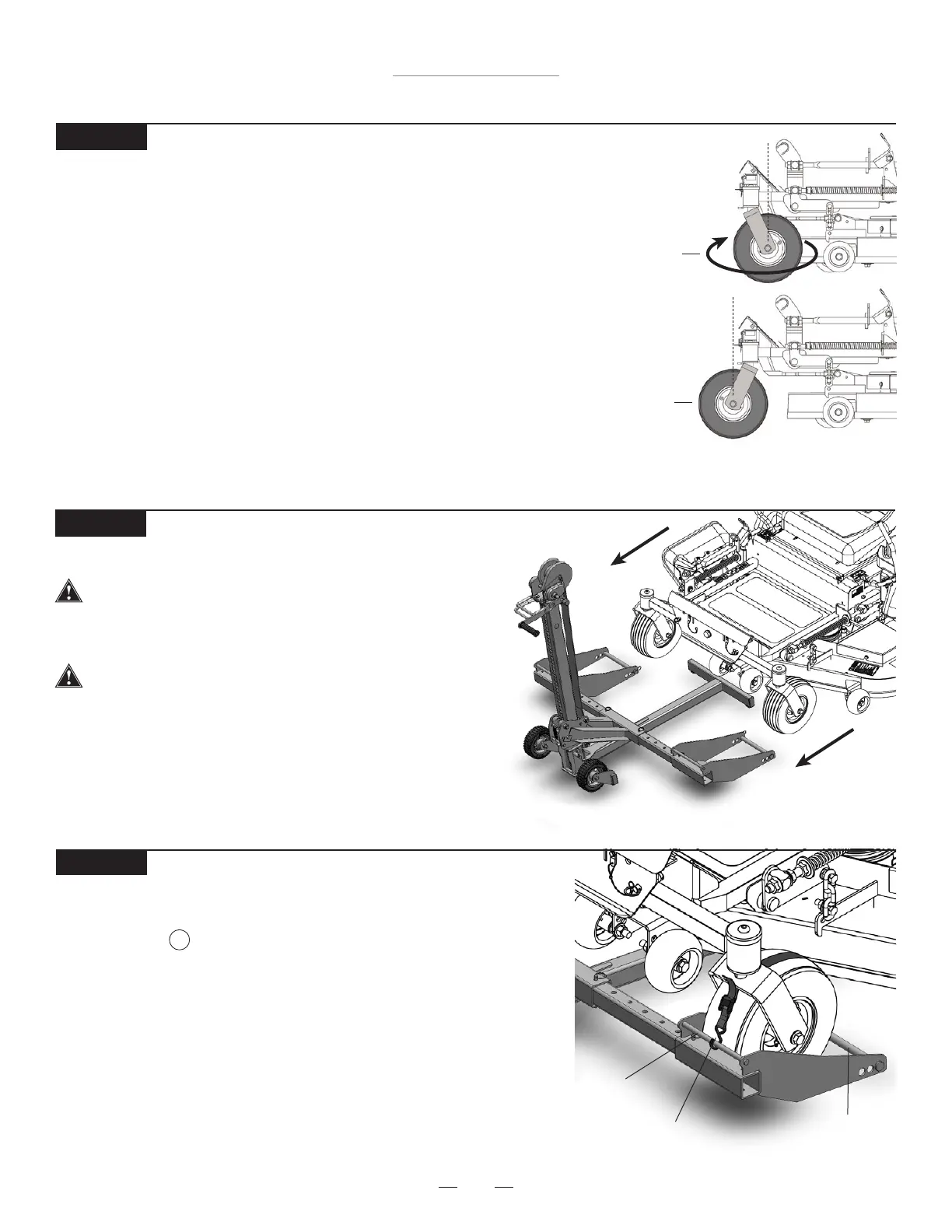 • Secure the front mower tires to the Wheel Pads using the