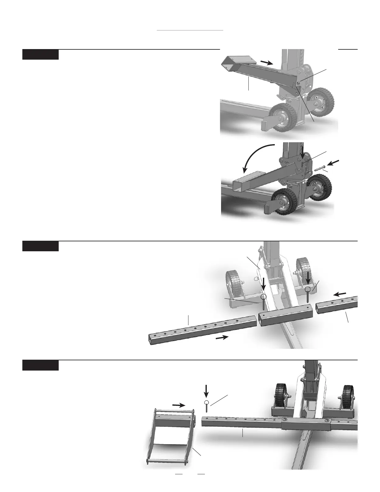 • Fije el brazo elevador al transportador con pasadores de