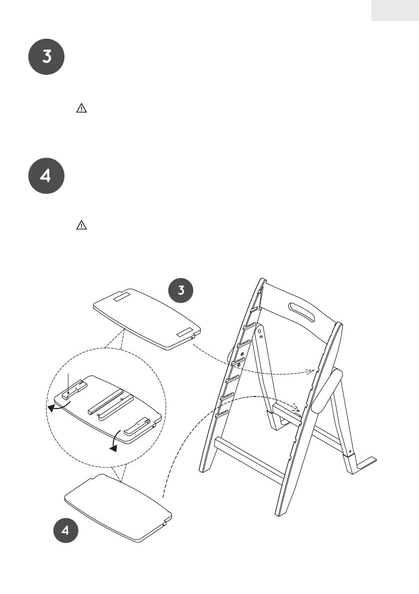 當使用護欄、小靠背和餐盤(均可選)時,須於主裝置頂端下方的第 3 或第 4 個凹槽處