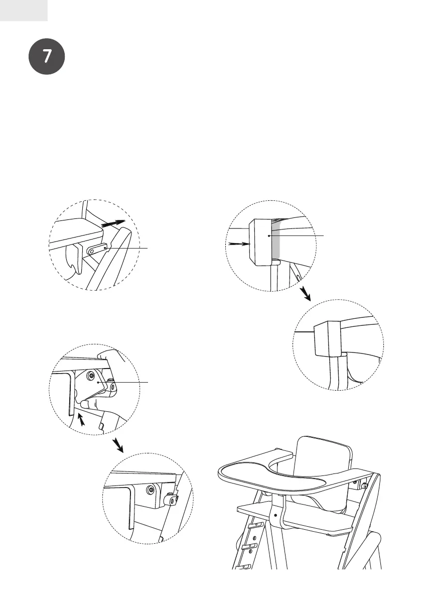 將護欄和小靠背固定到主裝置上之後,將餐盤的橢圓形零件插入到主裝置頂端下方的第 1