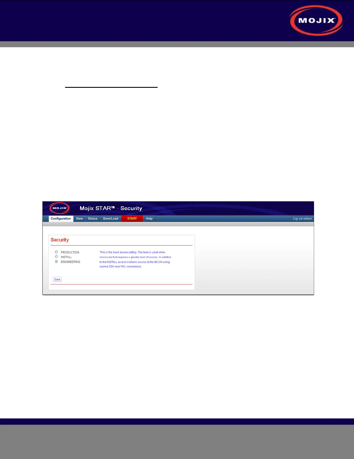 1. Set the security level to engineering via the Web user interface from your PC (example shown below).