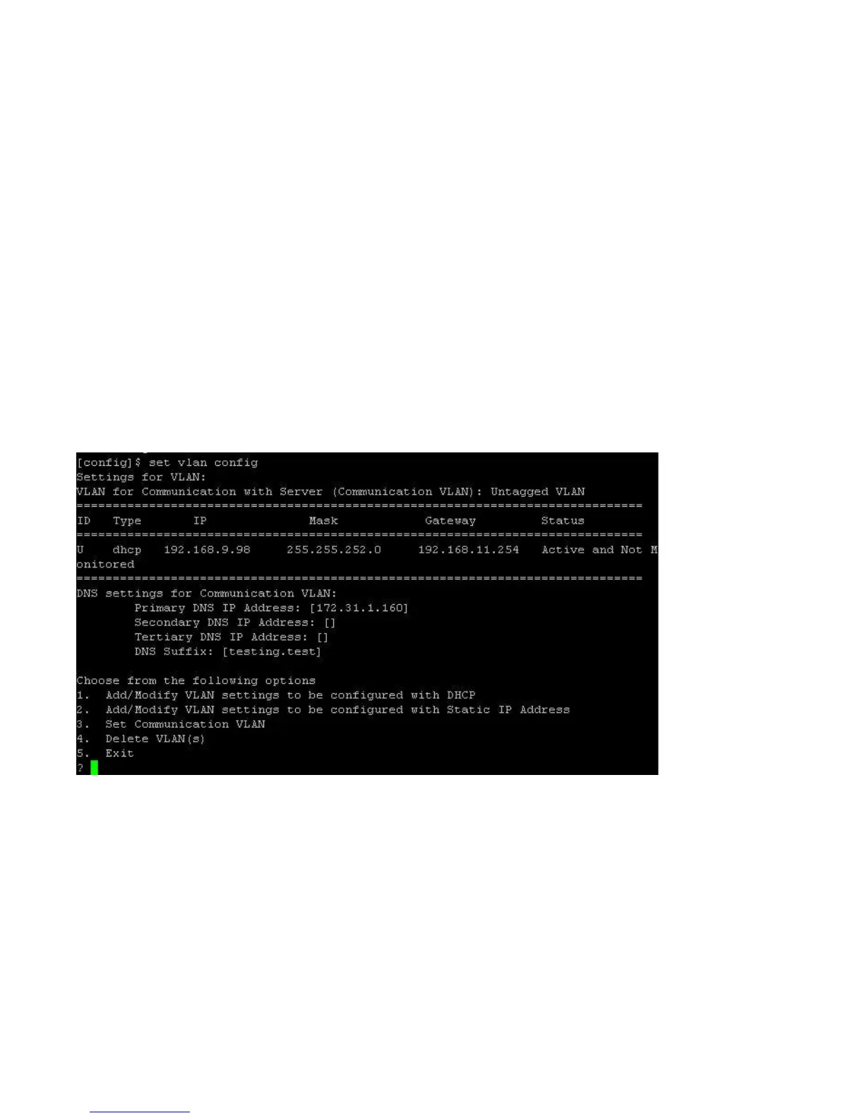 2. Choose option 1 to configure VLANs for DHCP and option 2 to configure VLANs with static IP