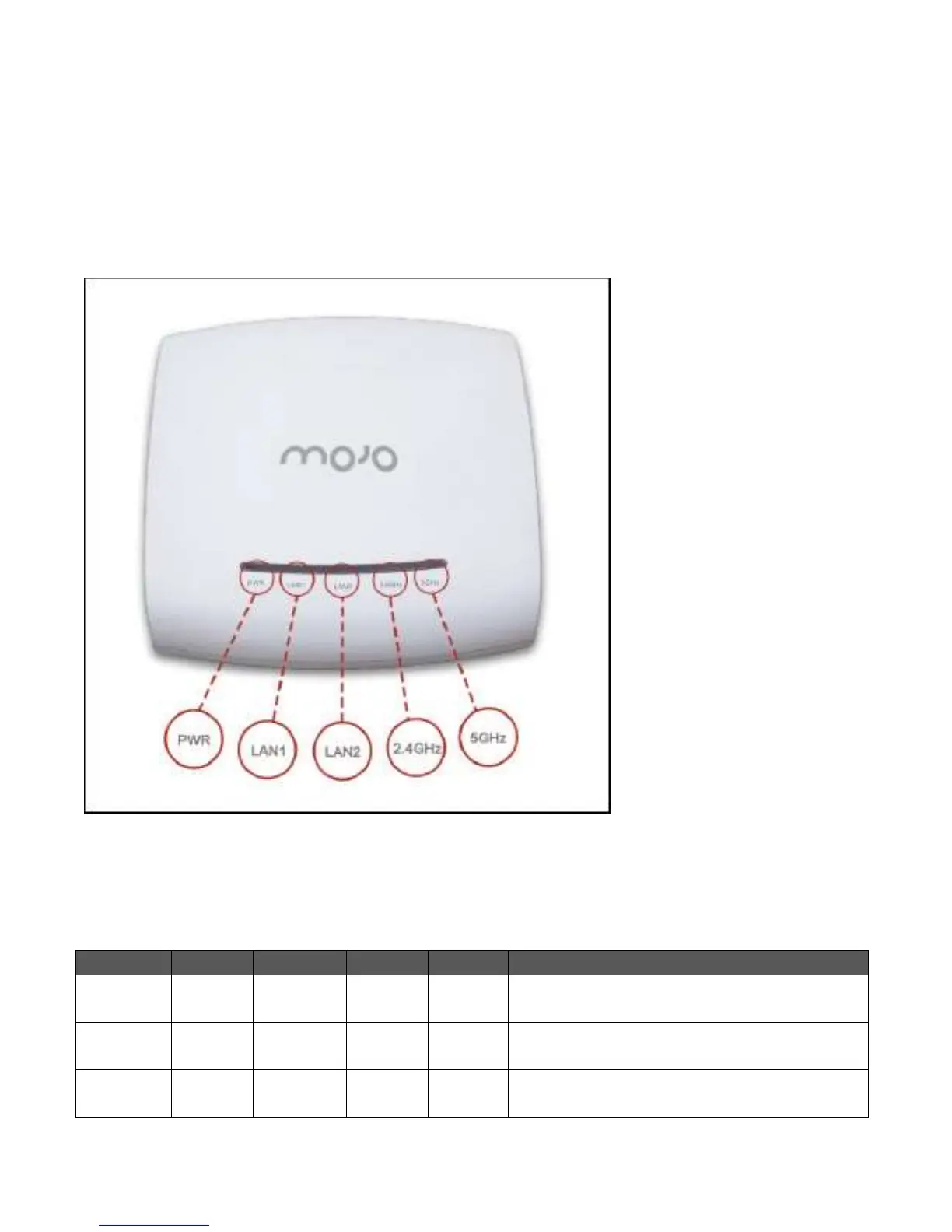 Table 0-1 LED Details for C-75 in the AP mode