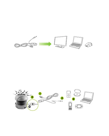 Insert mini USB into “CHARGE/AUDIO” port on BassBurger.