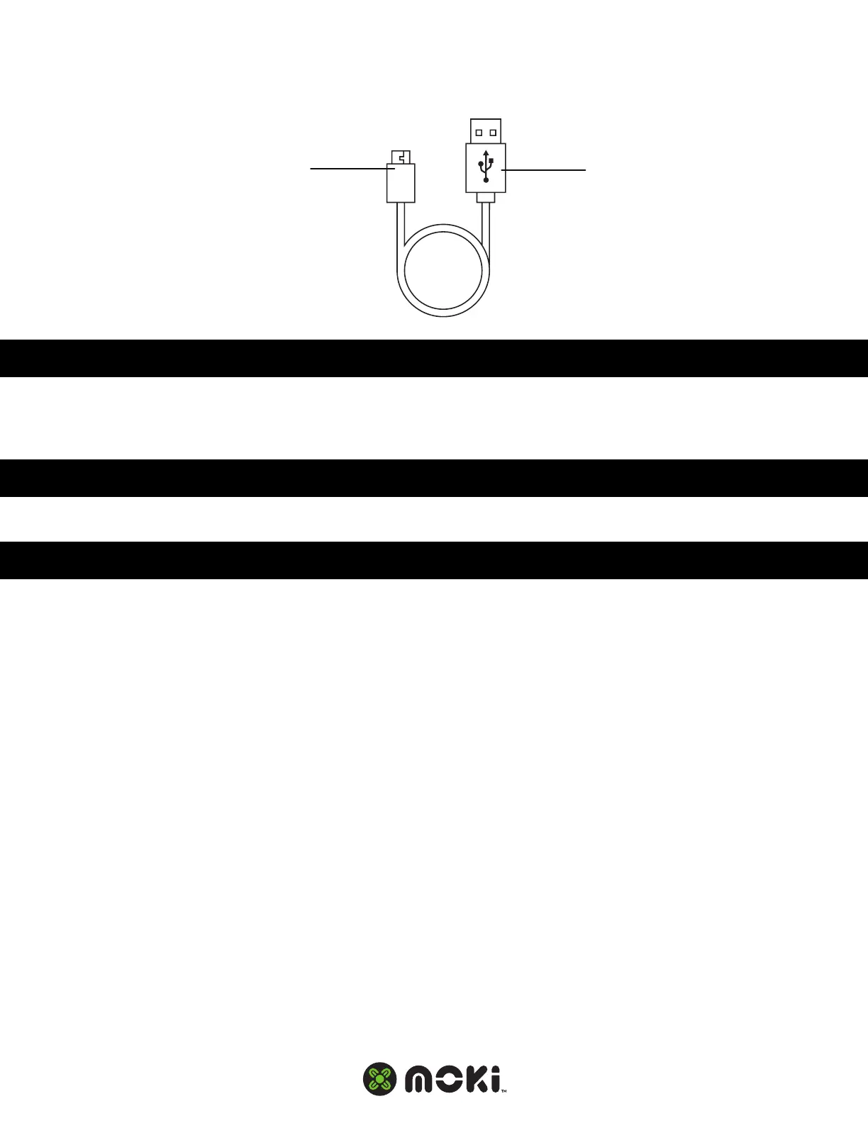 The MokiPods need a MicroUSB cable to charge, so any cable with a MicroUSB connection will