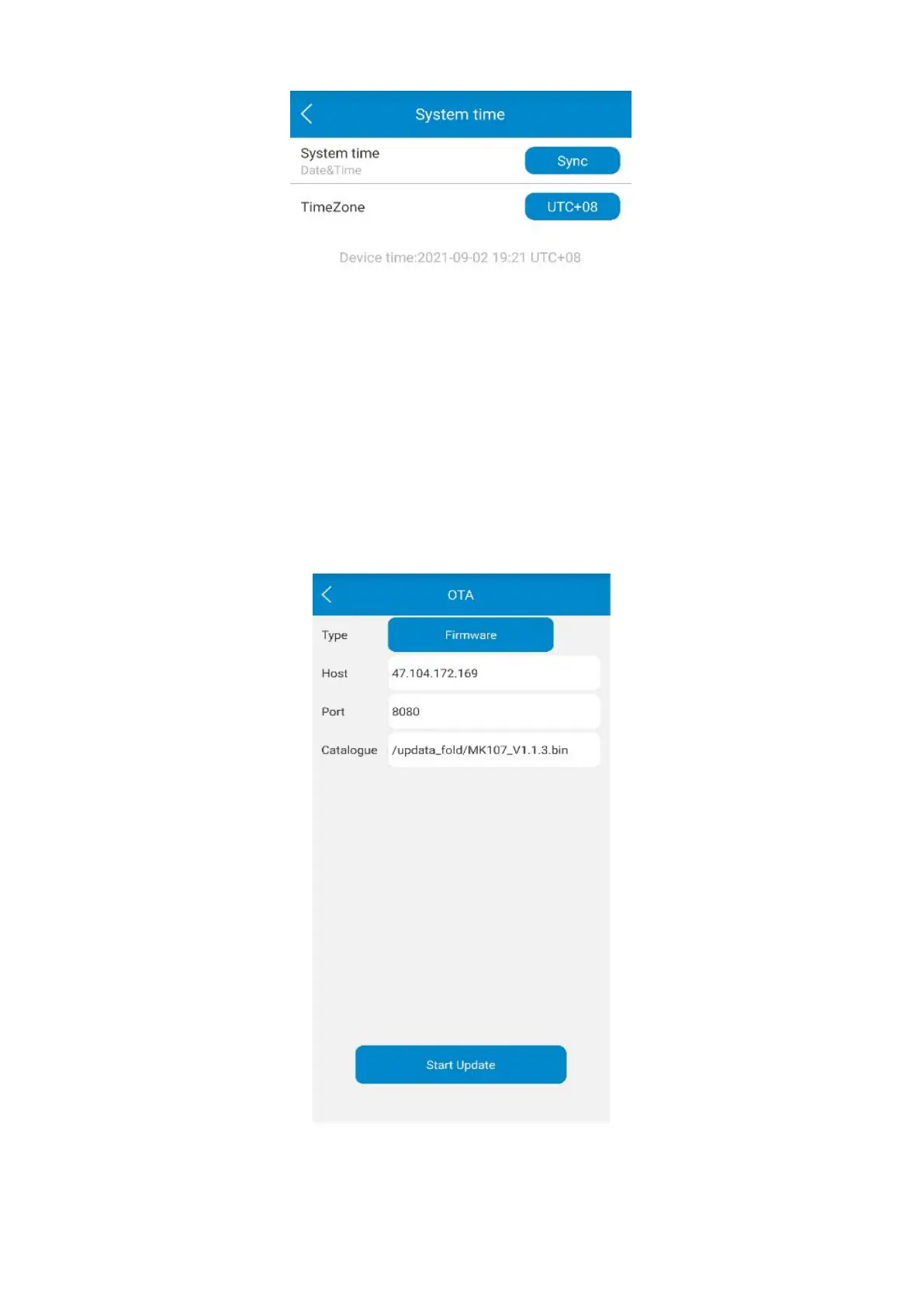 Note: The OTA server (47.104.172.169:8080) in the above picture is just available for your test.
