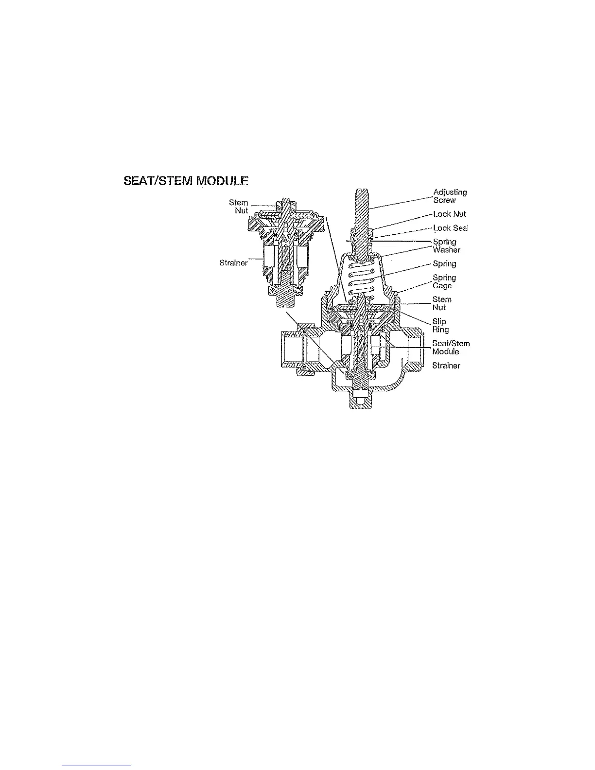 To clean strainer or replace seat/stem module shut off supply, loosen locknut and lock seal