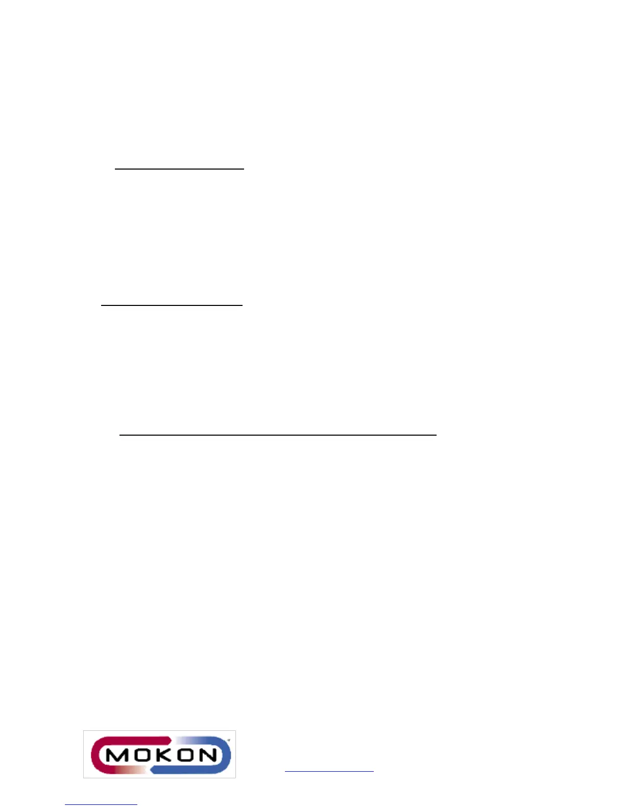 an abridged version - always refer to the Mokon Manual provided for additional data