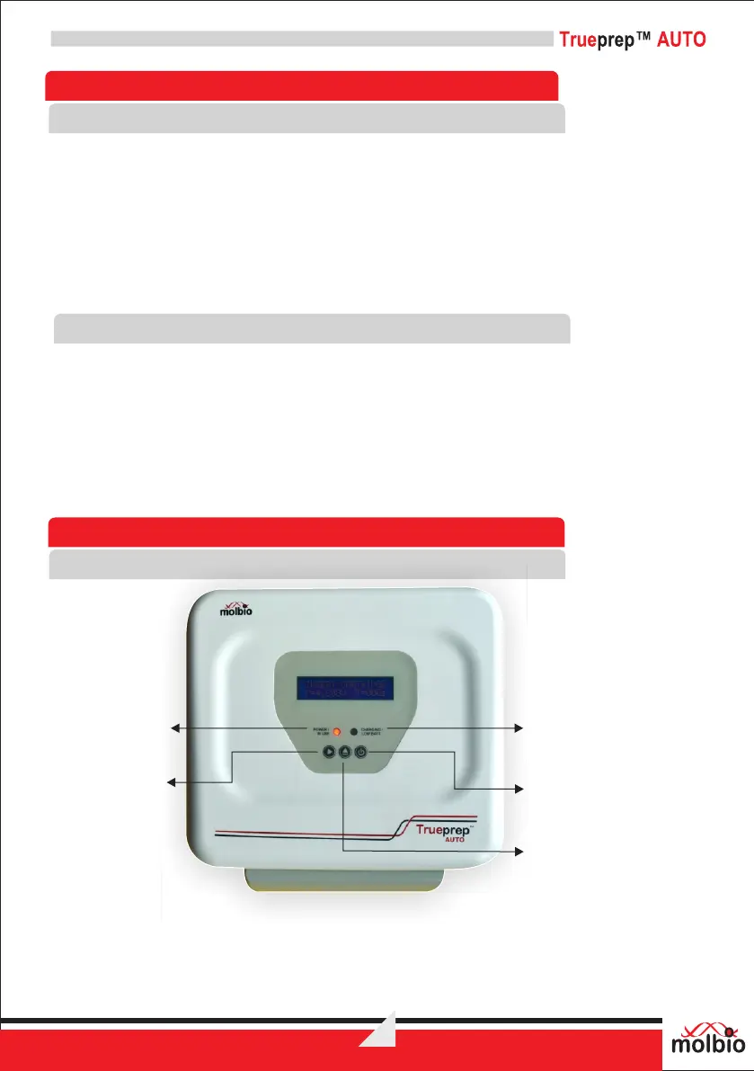 The Power button switches on and switches off the Trueprep™ AUTO