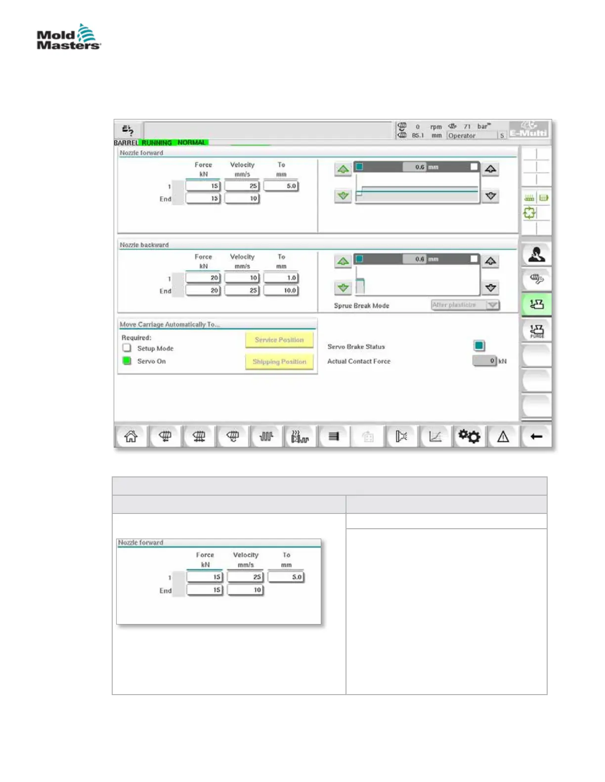 Figure 7-27 E-Multi Radial / Servo carriage screen