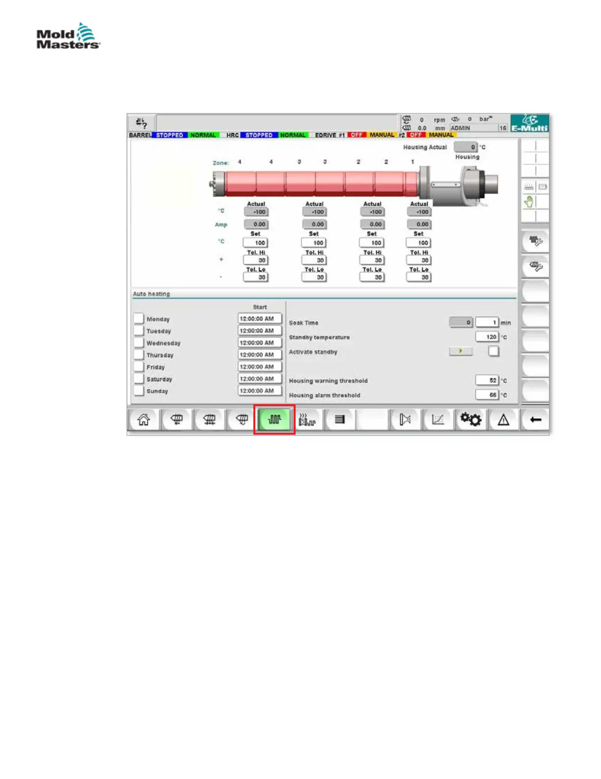 Figure 7-8 Mold-Masters barrel temperature settings screen