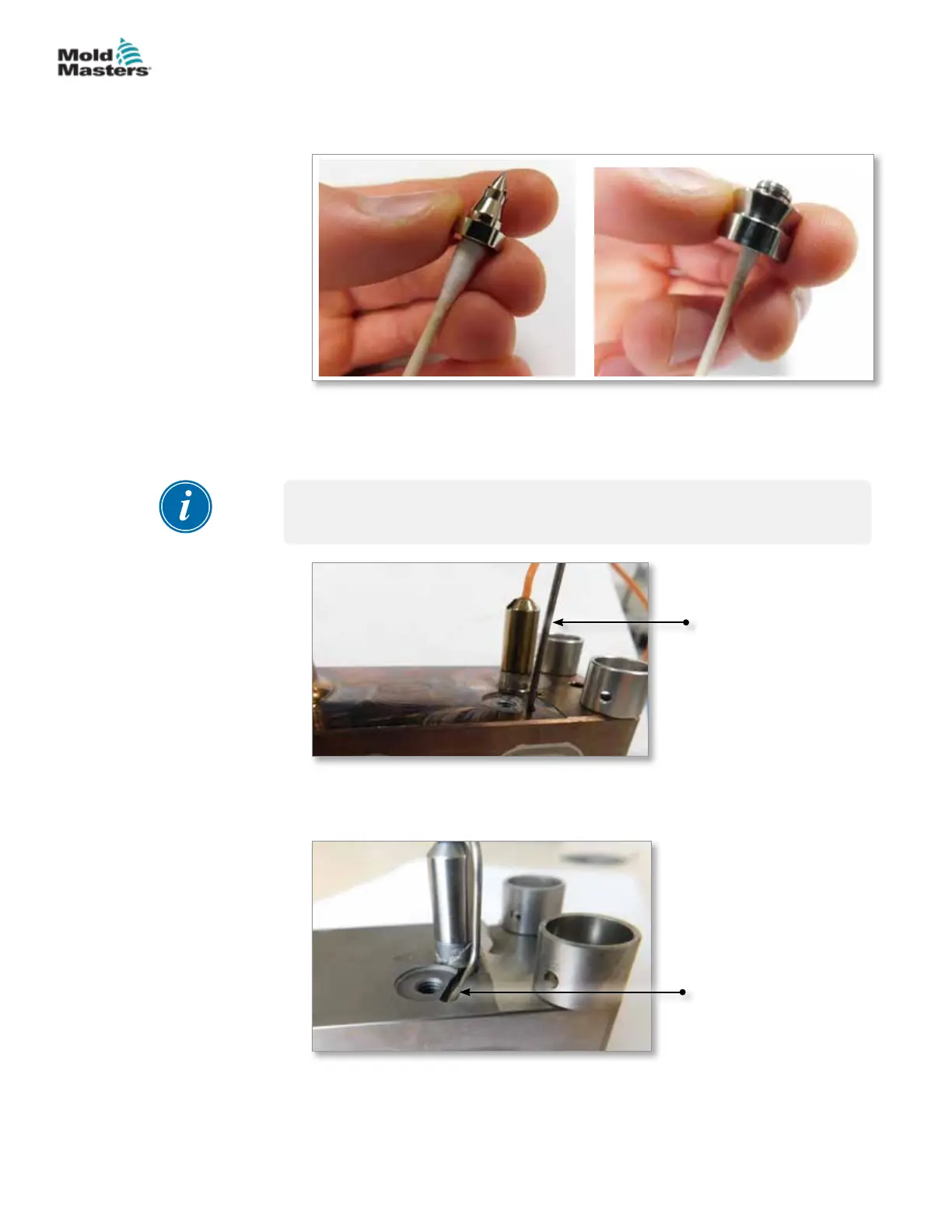 2. Bend the thermocouple back 90° to sit in the manifold channel. See