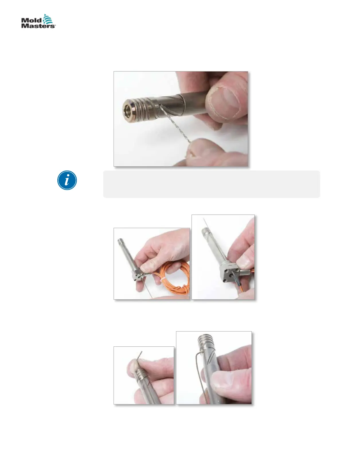 • For 1.5 mm (0.06 in.) thermocouples use a 1/16 inch drill in a pin vise.