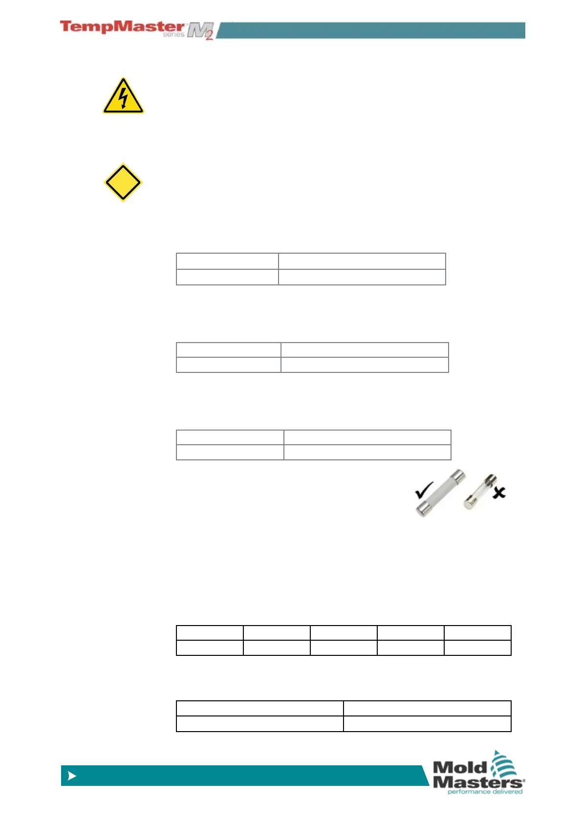 the correct fuse types are listed in the following tables.