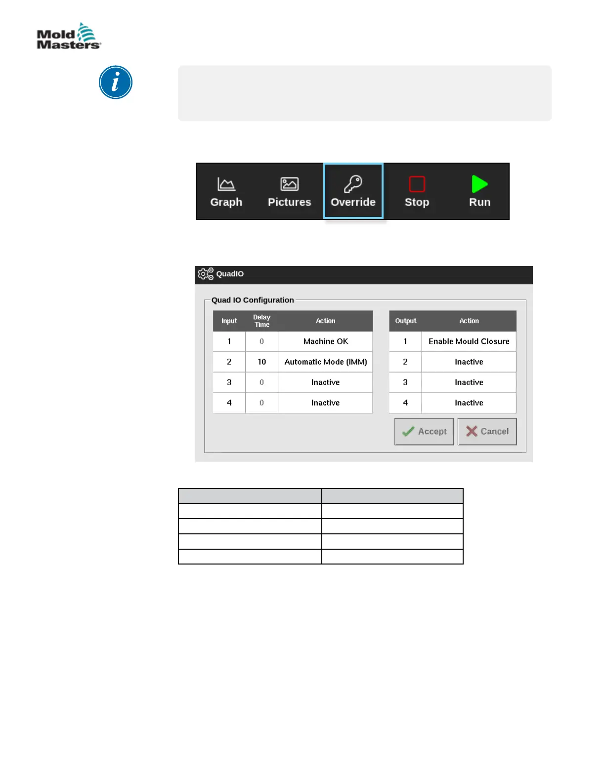 the Override button is pressed, the console will output the Enable