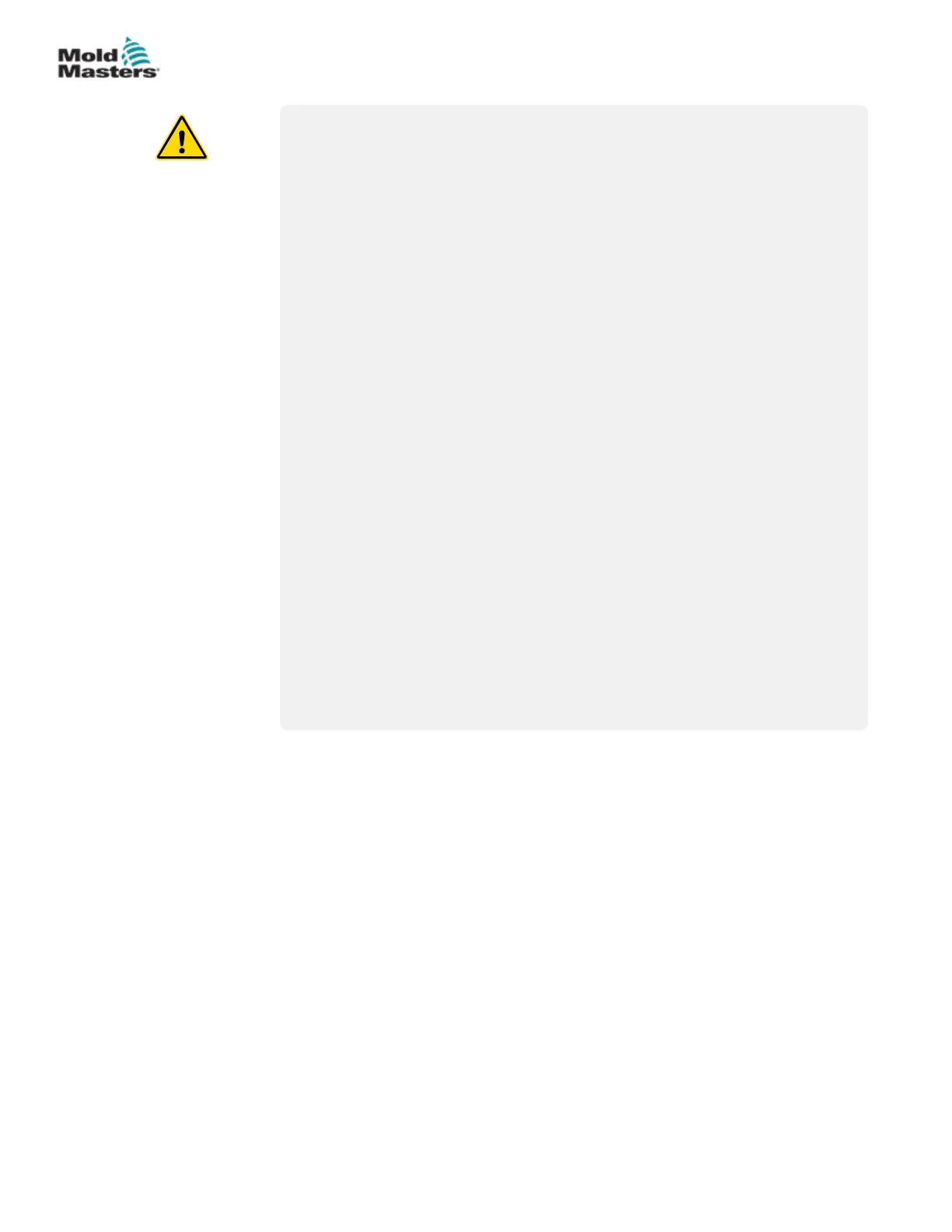 • A crushing hazard exists between the nozzle and mold melt inlet during