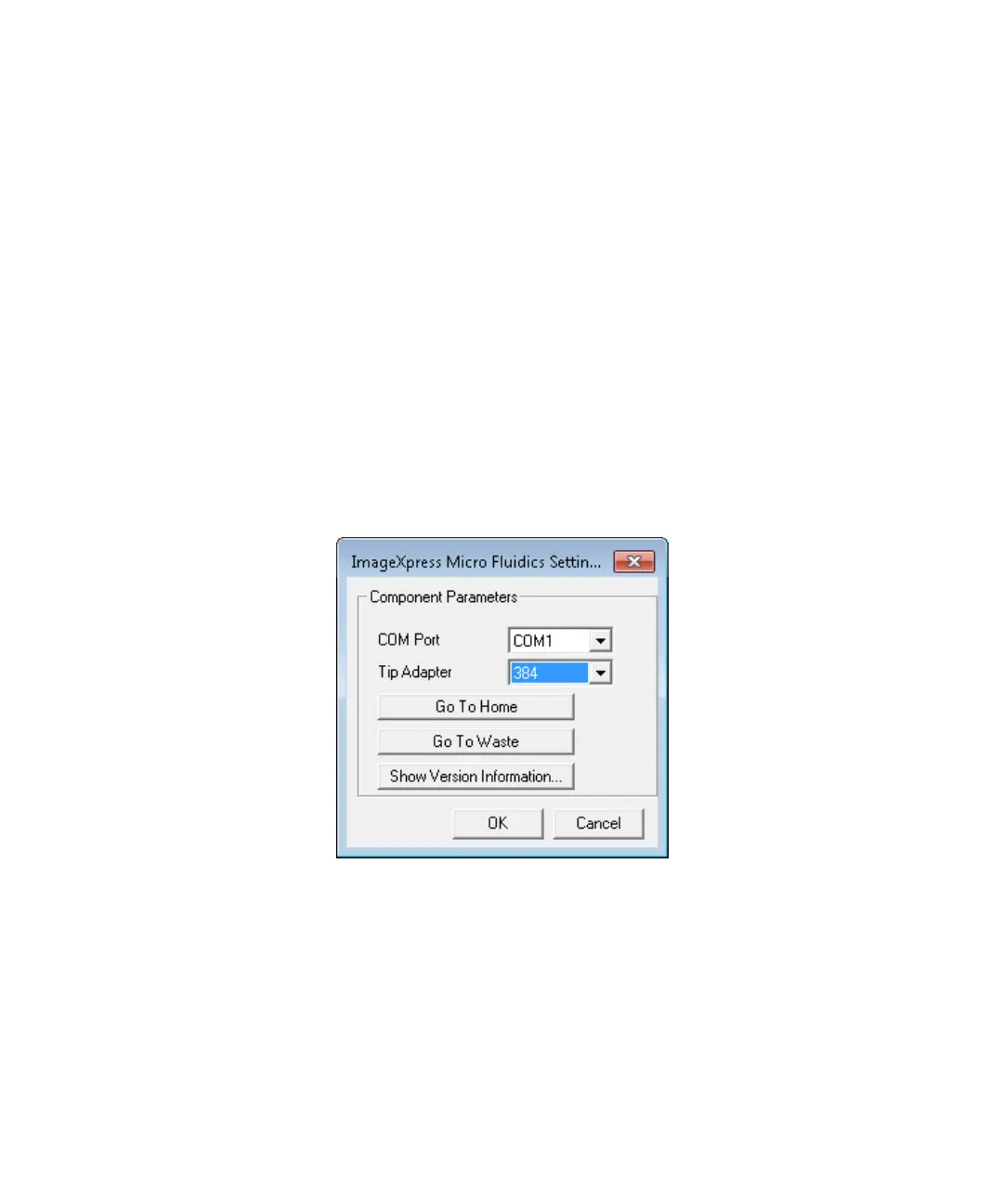 Figure 2-2: ImageXpress Micro Fluidics Settings dialog