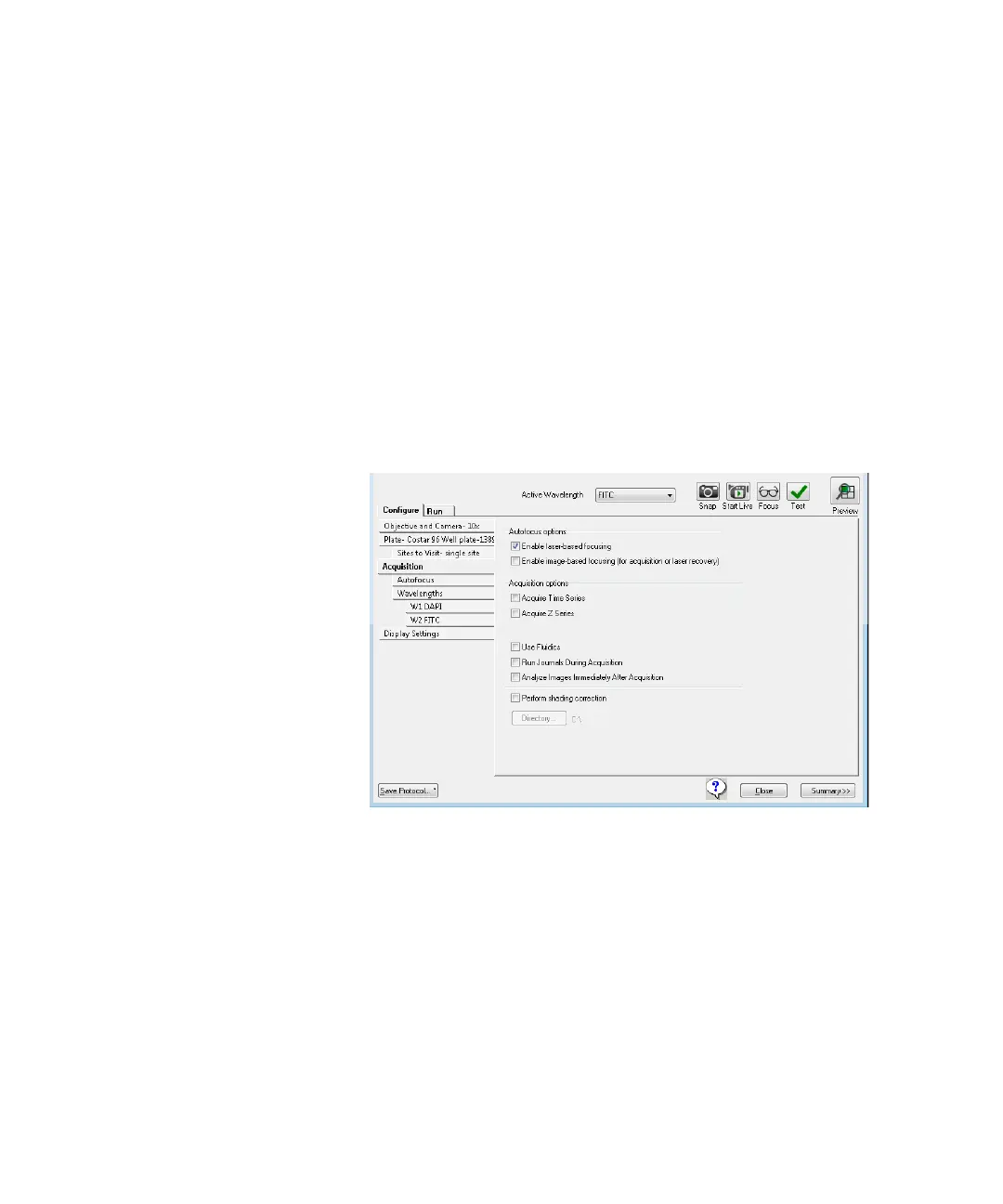 Figure 2-11: Plate Acquisition Setup dialog: Configure tab,