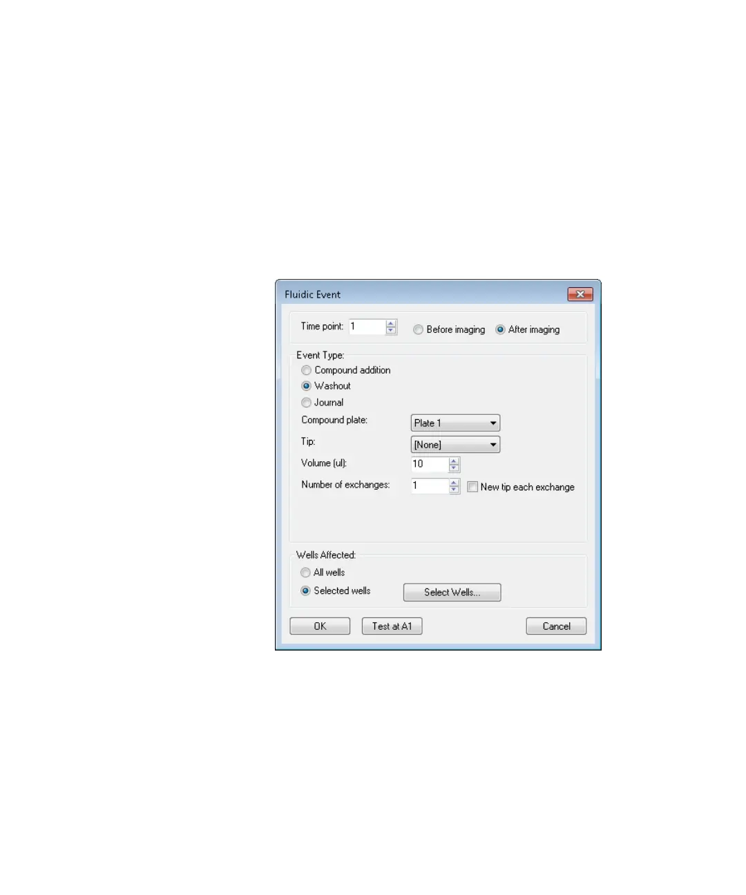 Figure 2-16: Fluidic Event dialog Washout Event