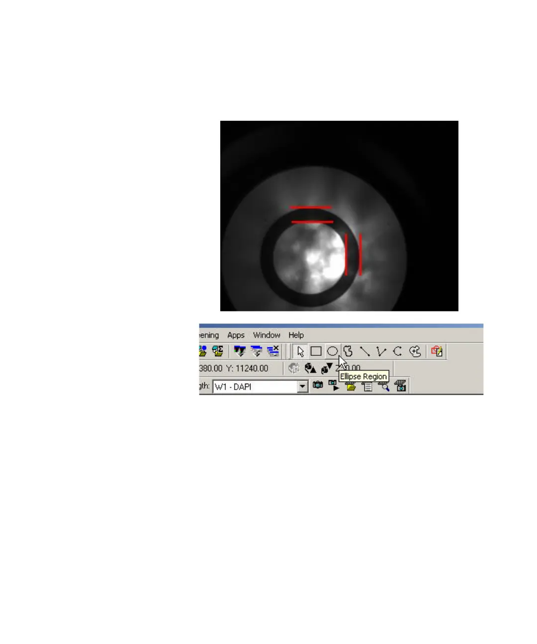 12. Use the region tools in the MetaXpress software to mark the