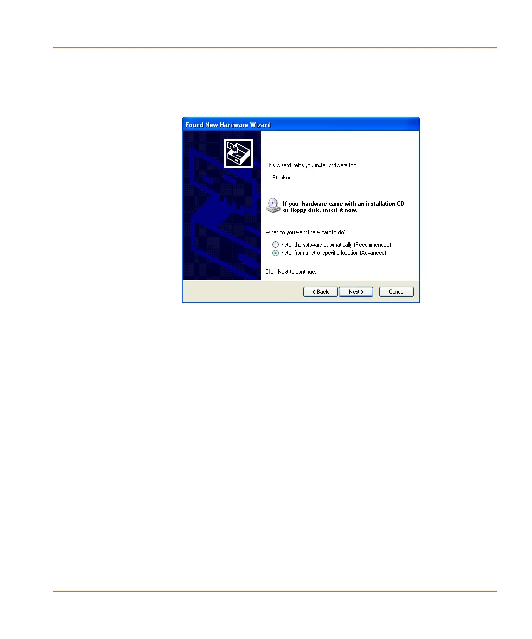 4. In the Found New Hardware Wizard window that appears,