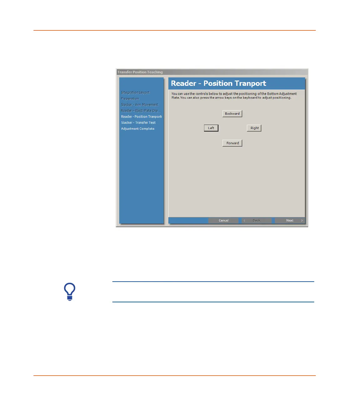 Figure 2-64 Reader - Position Transport window.