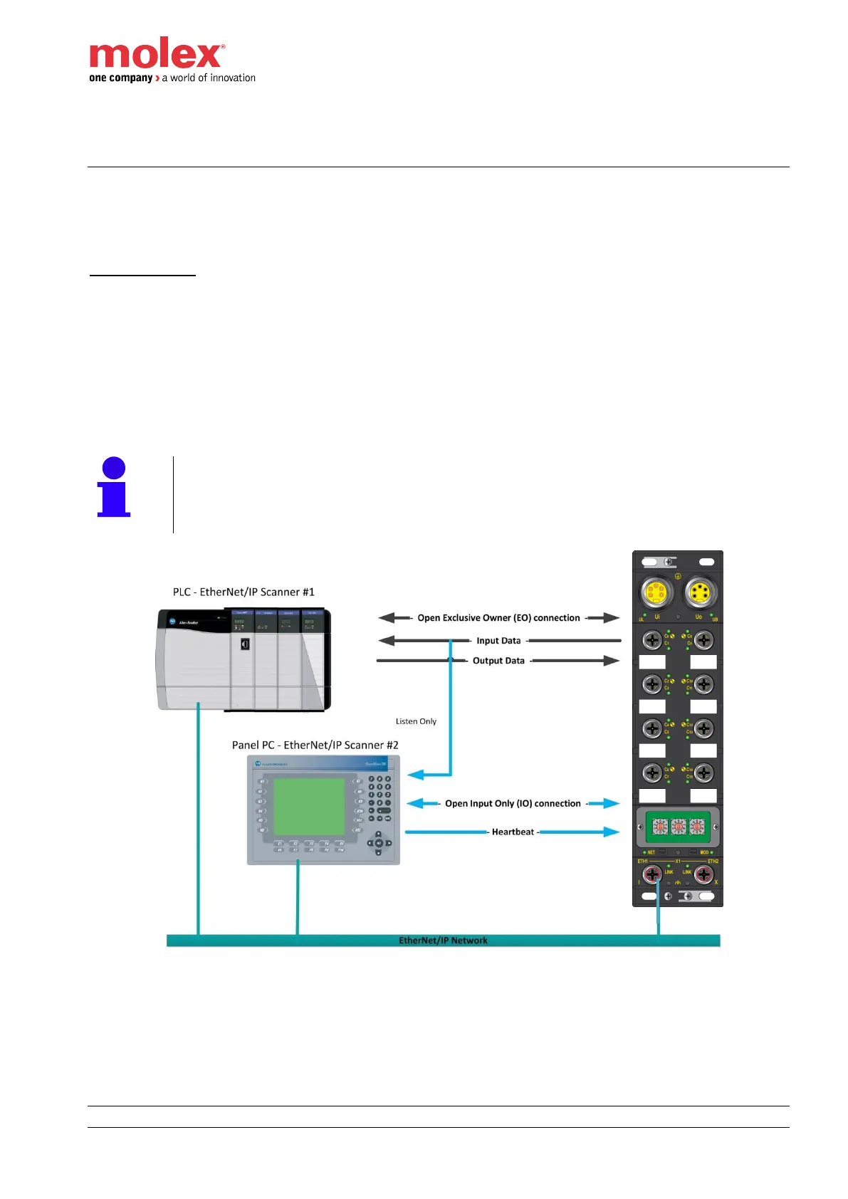Listen Only connection allows a second Ethernet/IP scanner connected to the