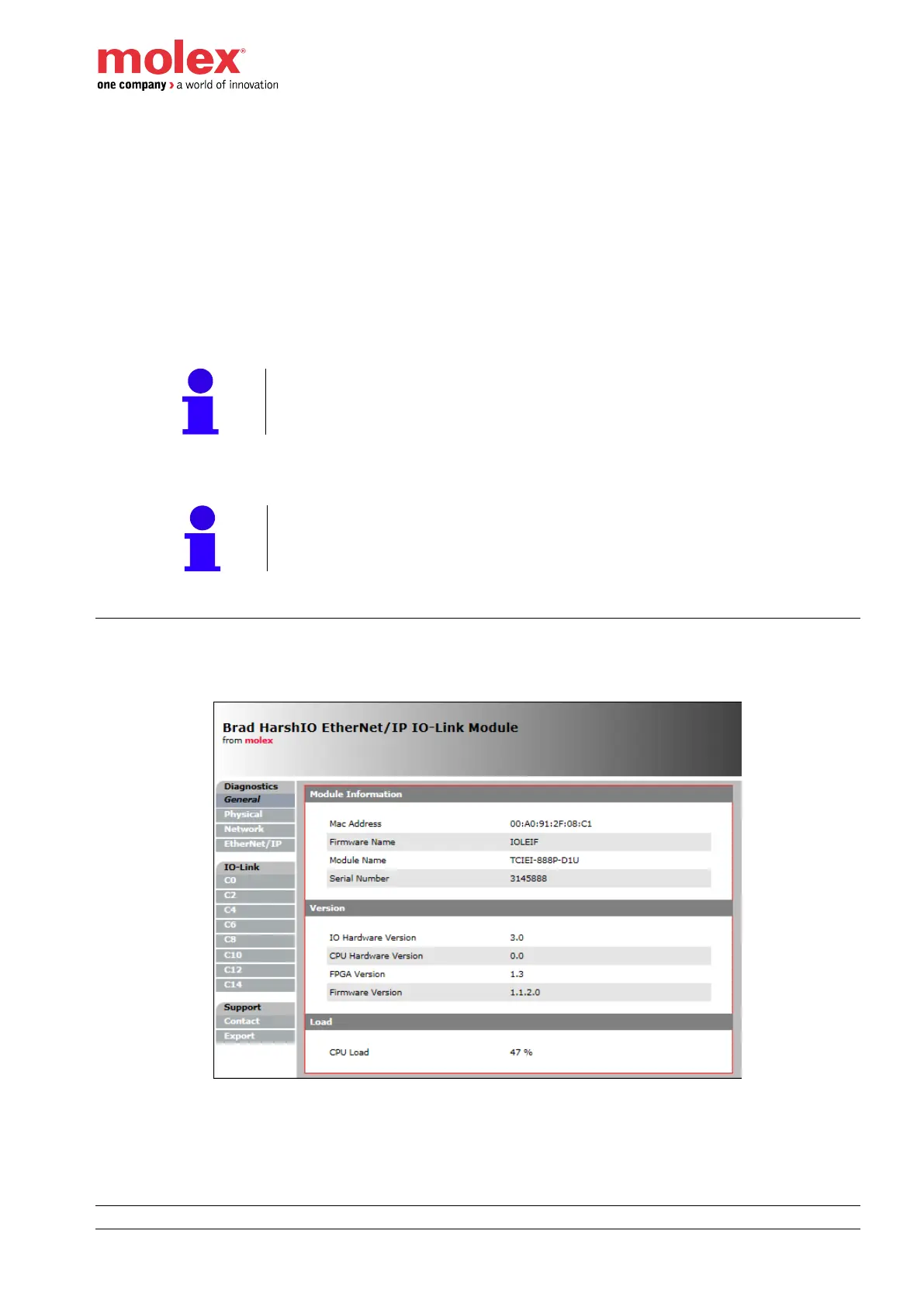 molex Brad HarshIO 600 eIP - 11 Web Server Interface; Module Information