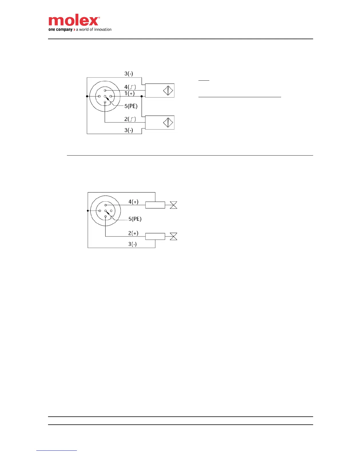 Connect pin 1 (24 V) and pin 4 or 2 (signal in)