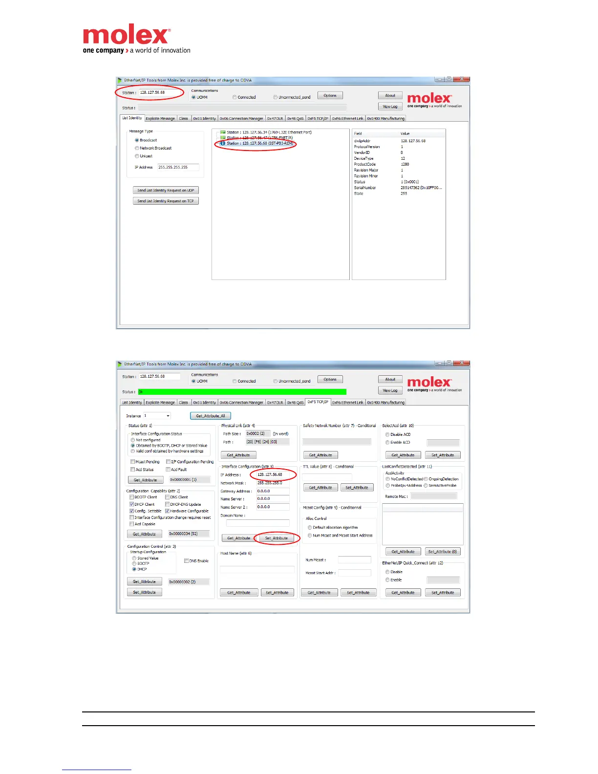For example to modify the IP Address parameter, write the new IP and select Set_Attribute button to