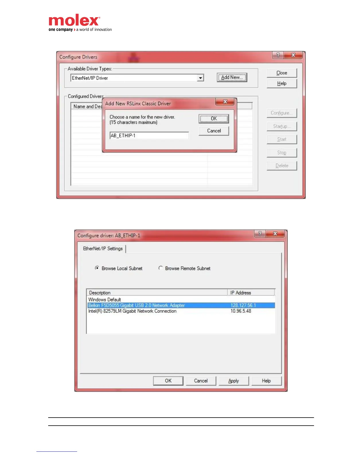 If you have multiple network interfaces in your computer, select the correct one to communicate with the