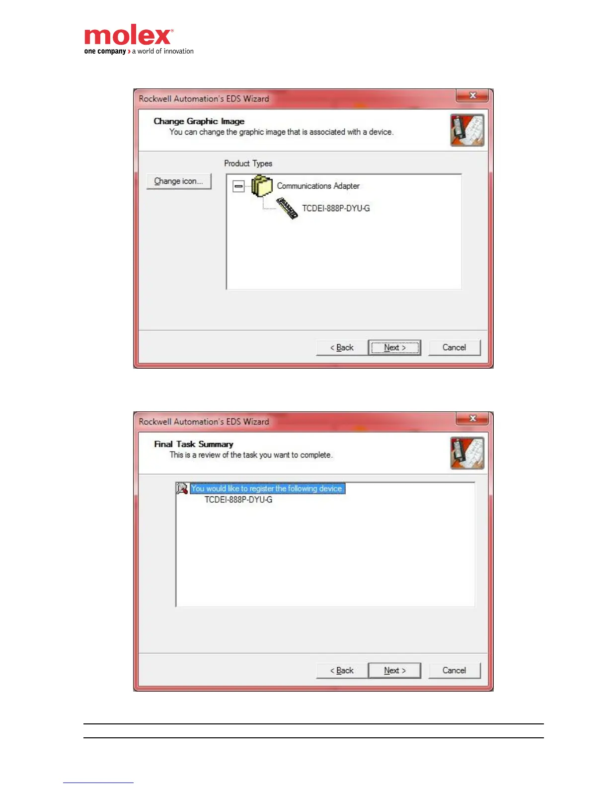The EDS Wizard is importing the EDS file and icon in the Rockwell hardware library.