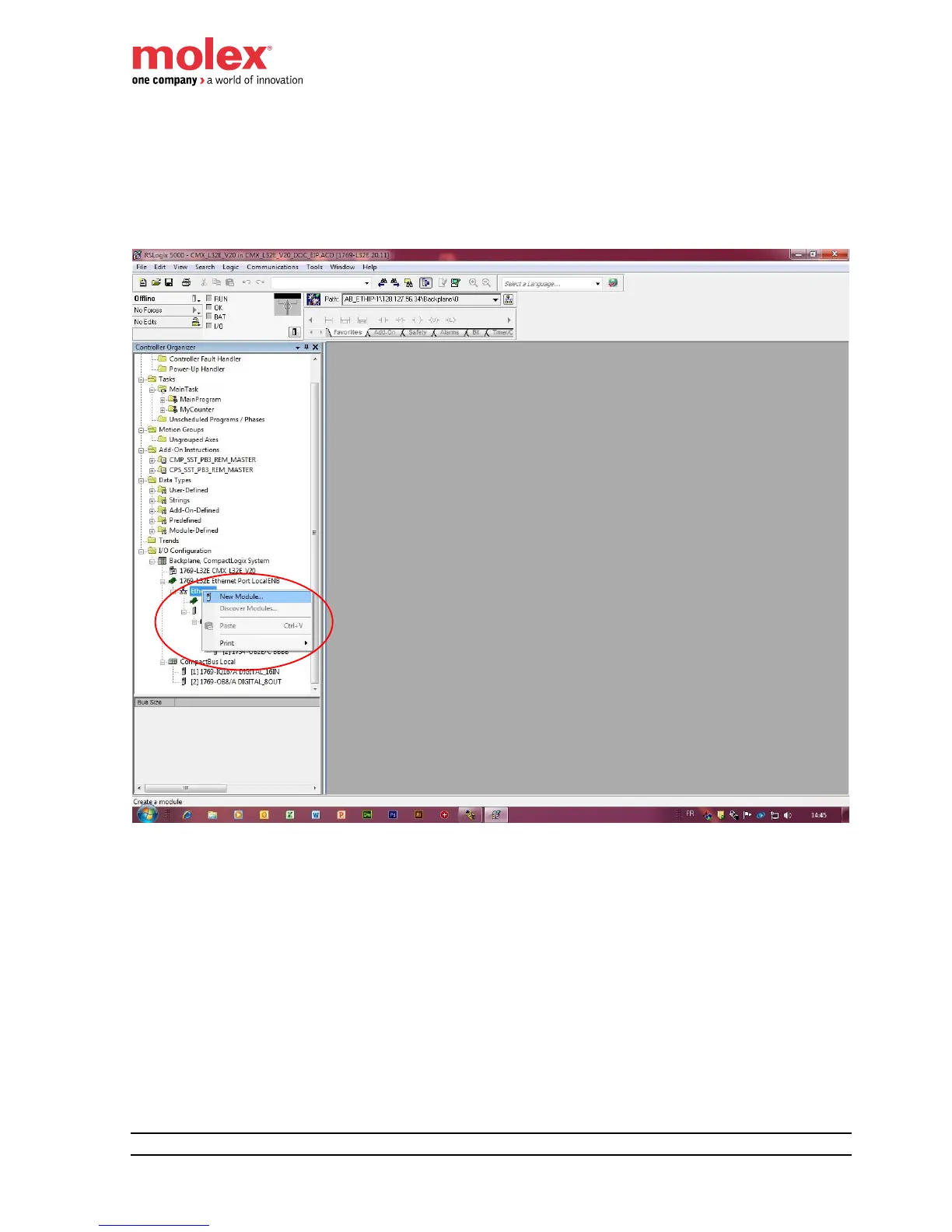 2. Add HarshIO eIP module into Rockwell RSLogix 5000 software