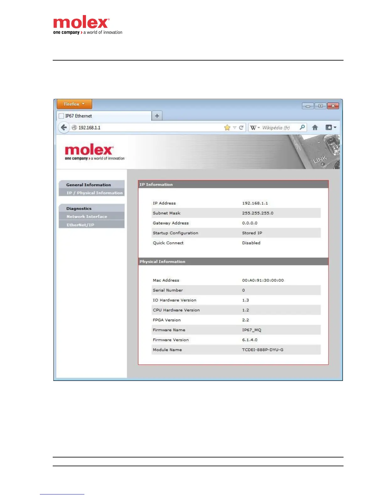 molex BradControl HarshIO 600 eIP - IP and Physical Information
