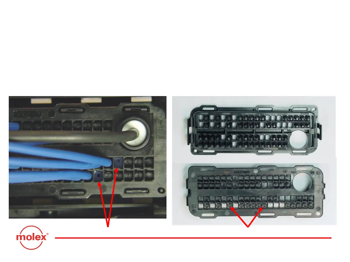 Cavities Open For Circuits Molded-in grommet seal plugs