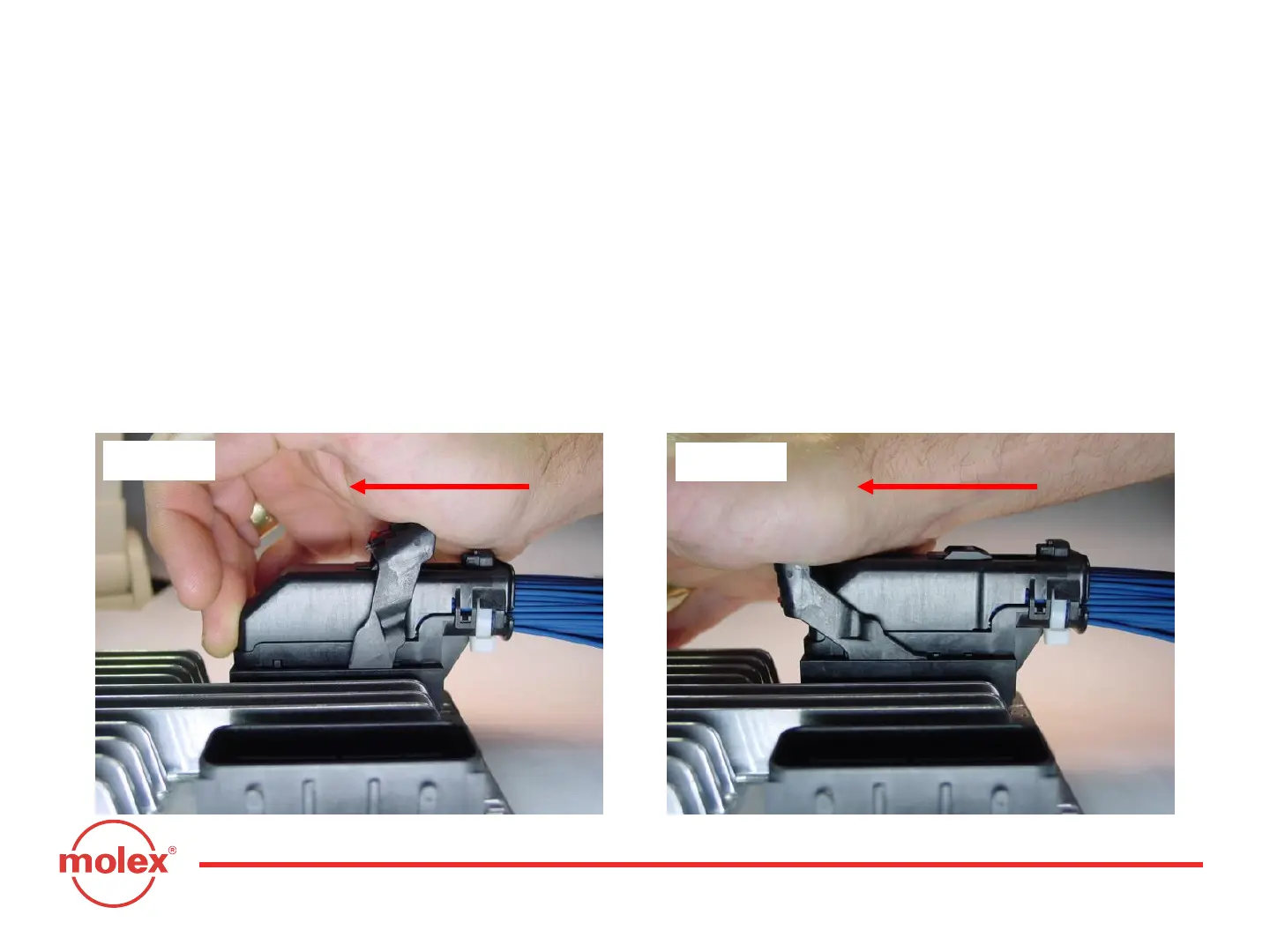Push the top of the mate lever arm away from wire bundle using the palm of
