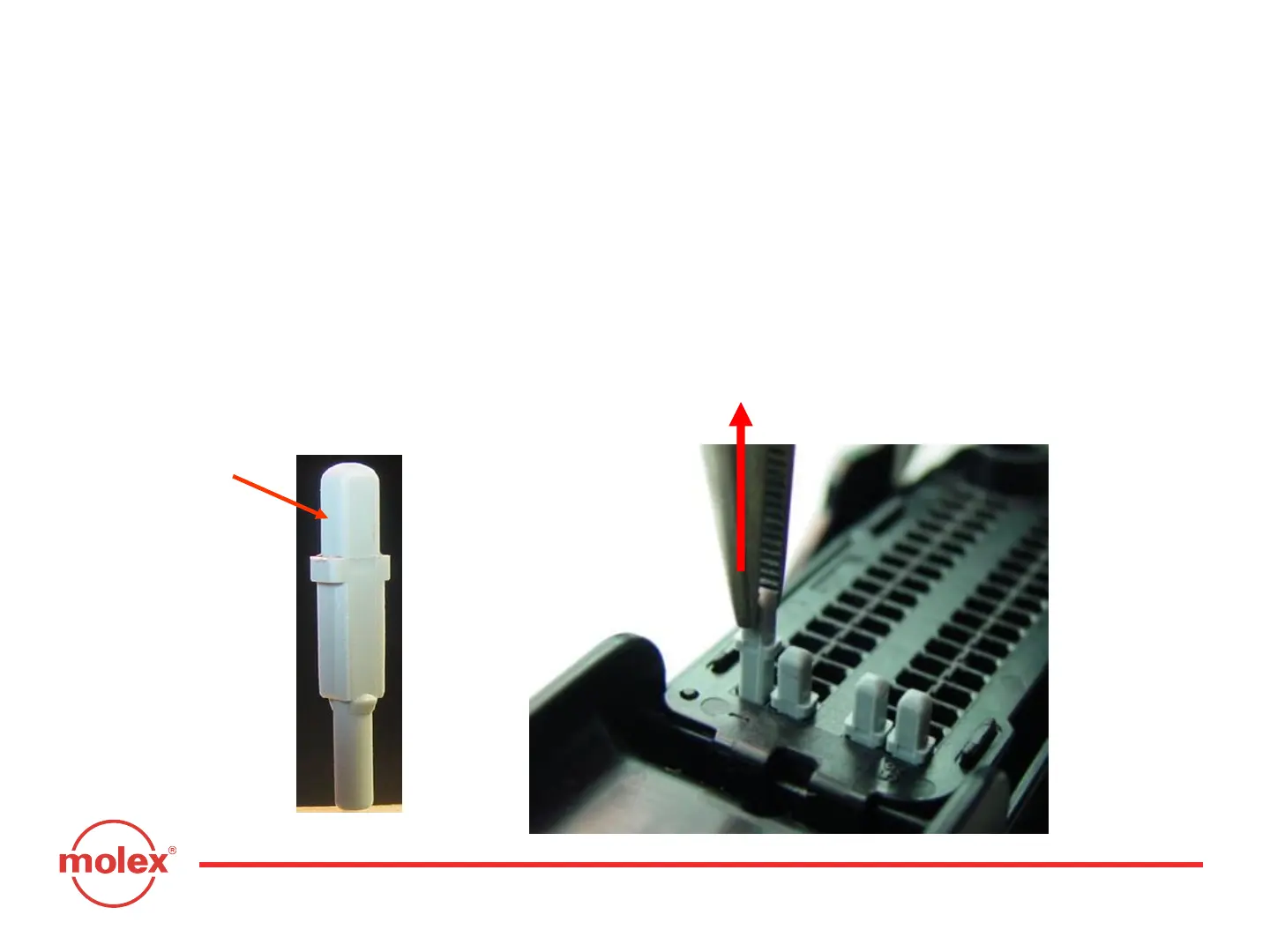 Step 2. Use needle nose pliers to hold head of 0.64mm grommet seal plugs.