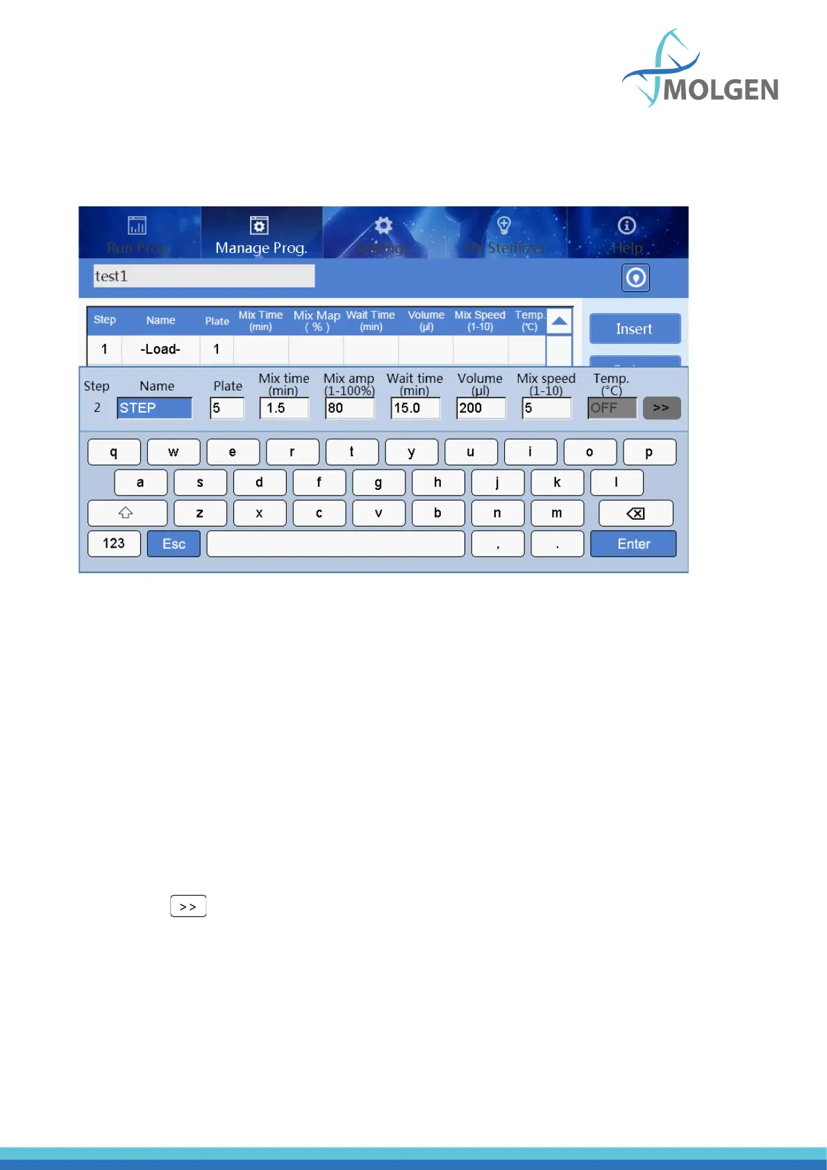 • Temp.: The temperature can be set according to actual requirements, only plate position No.2