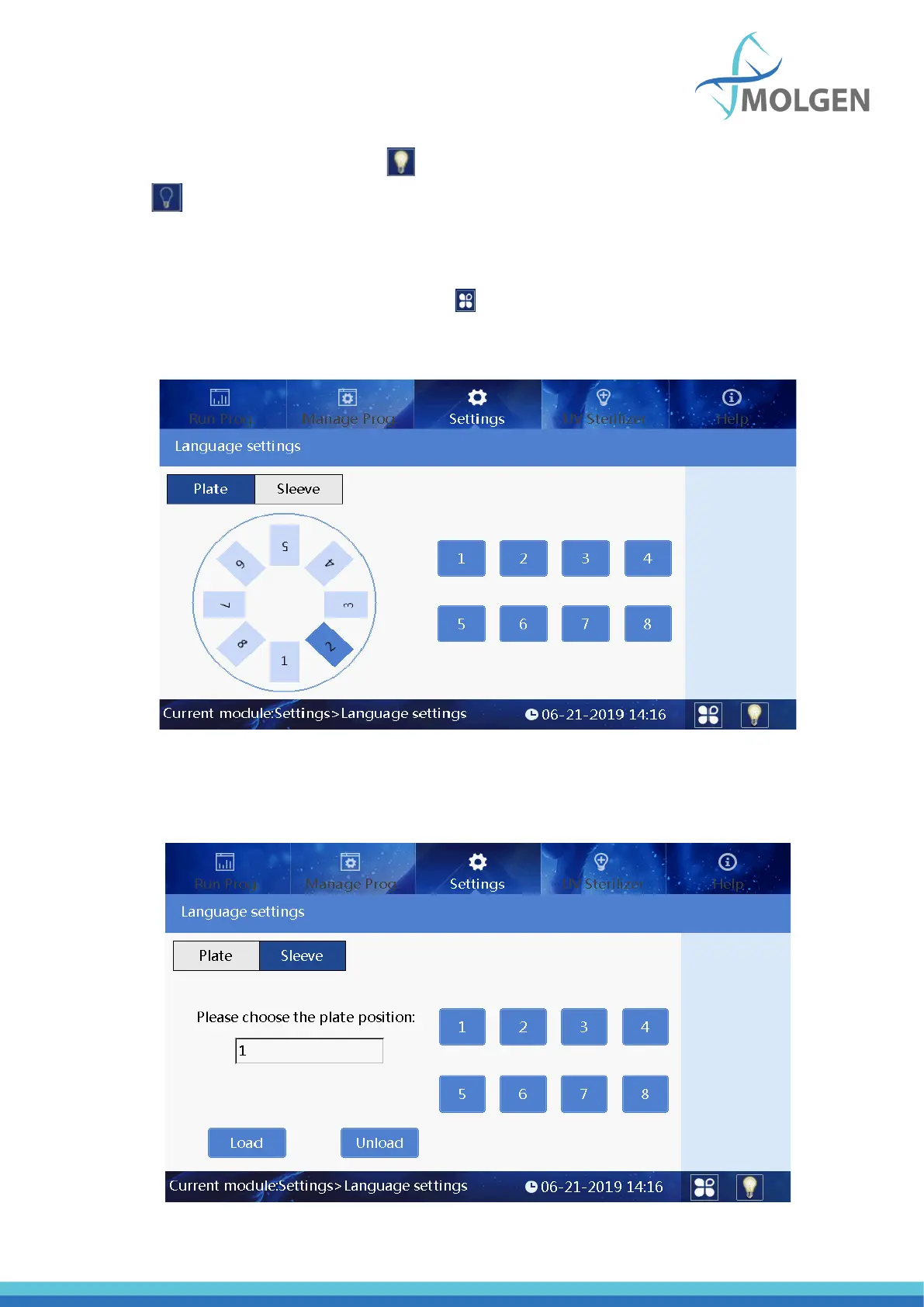 software. In the plate position switch interface as seen in figure 32 below, you can click to