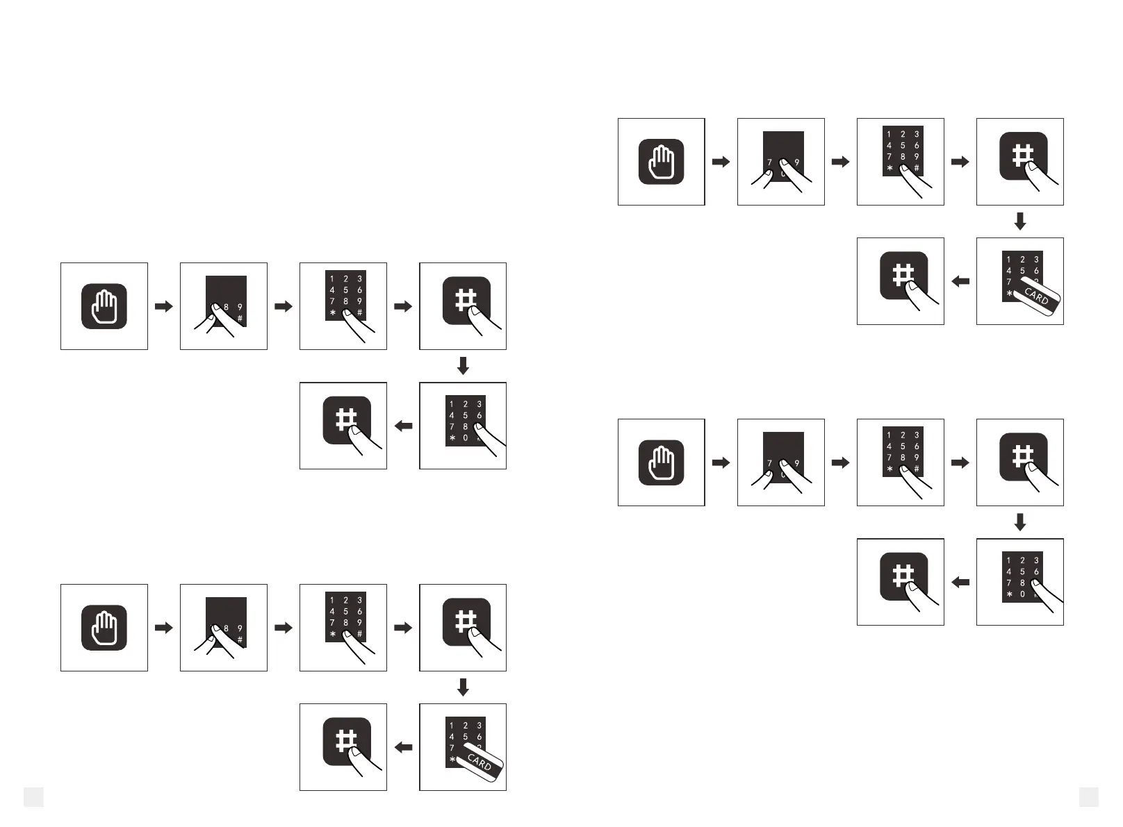 then input new user passwords and press “#” to exit. Repeat for more user passwords.