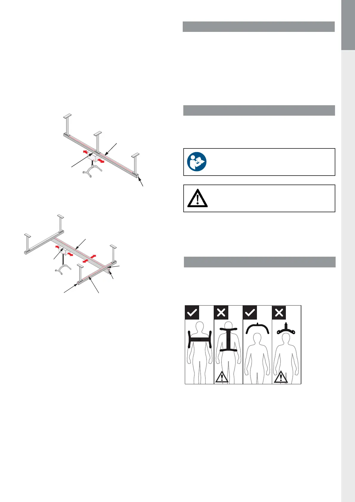 The 4-point sling bar must always be positioned across the client,
