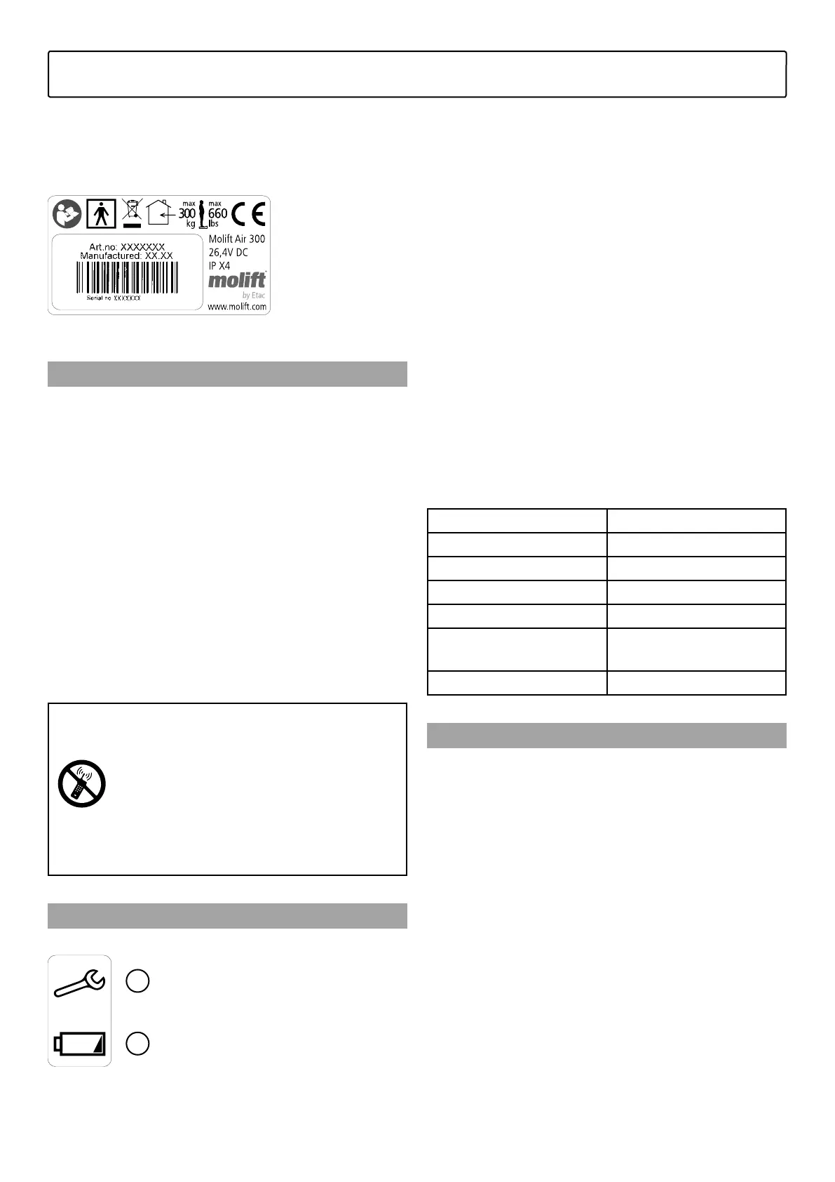 Authorised service personnel can use the Molift