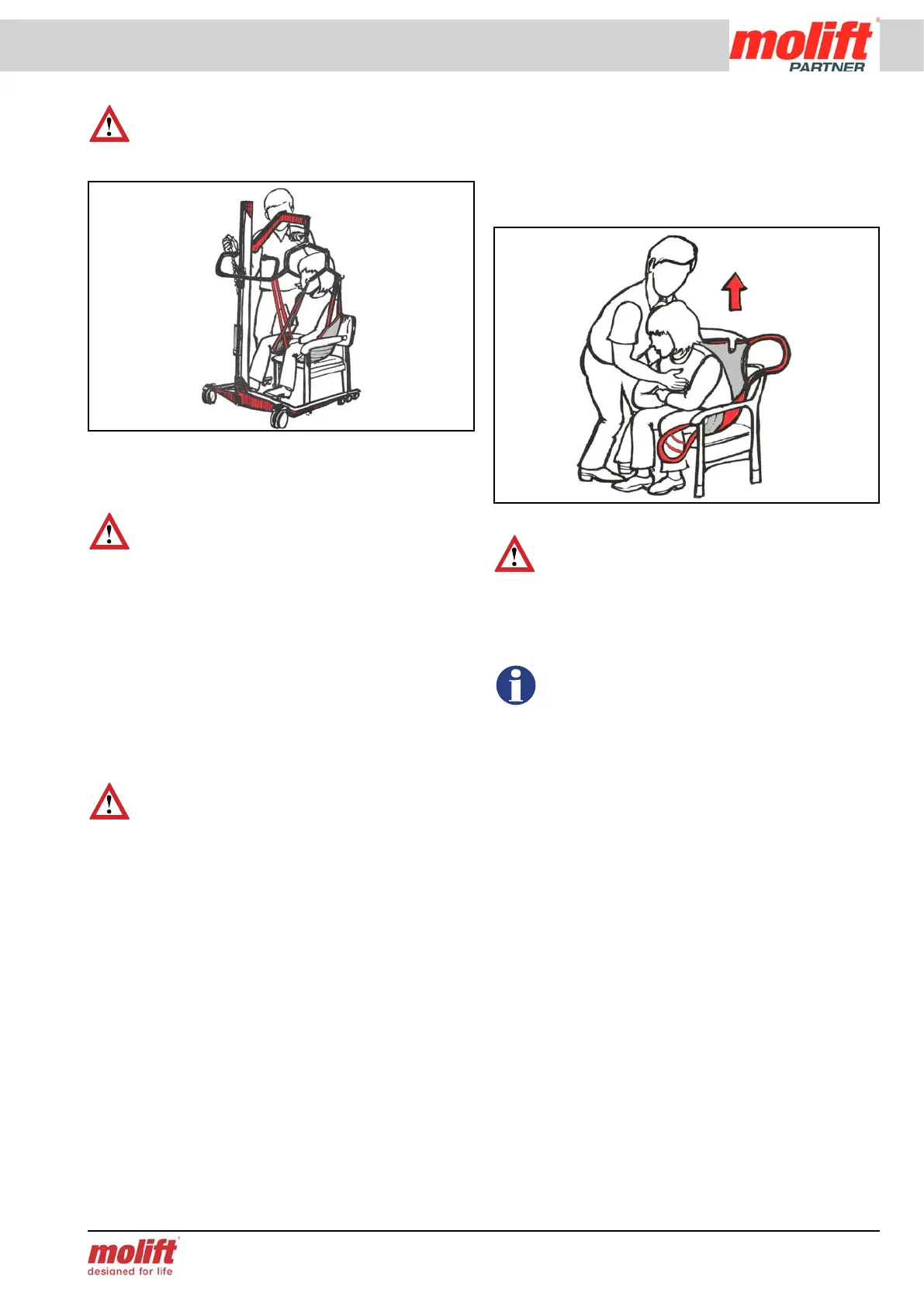 Manoeuvre the lifter so that the user is as far back in