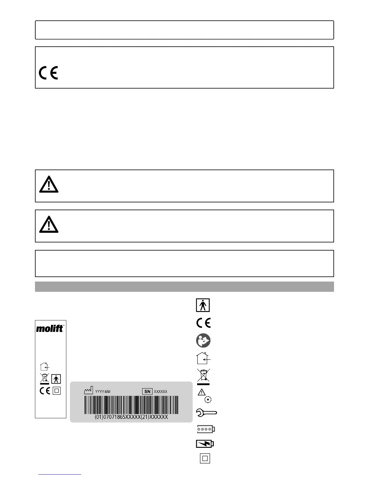 We recommend only using Etac Molift components and spare parts. Declaration of conformity is not