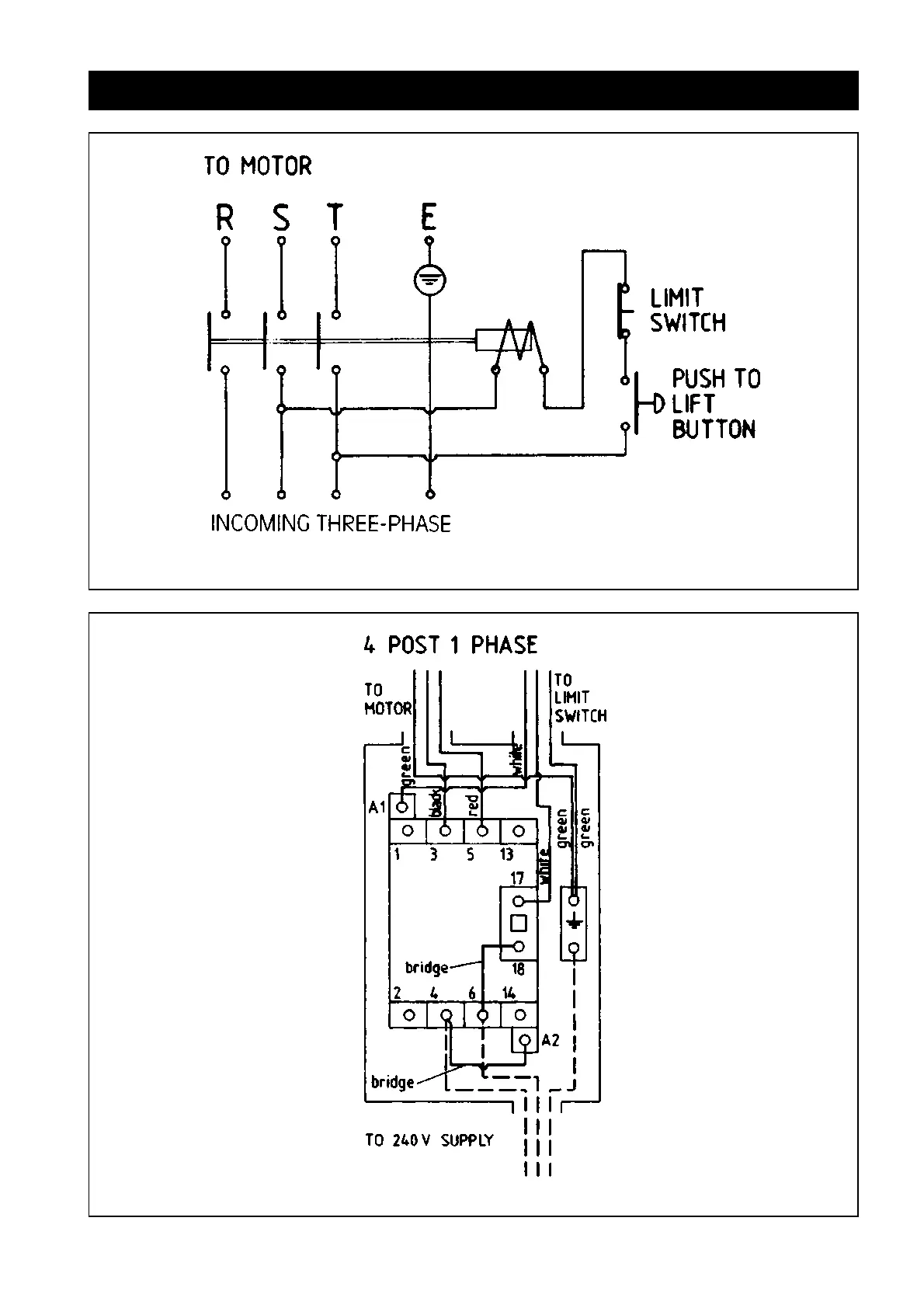 Molnar 3585 - Wiring Diagrams; Three-Phase Motor Wiring; Single-Phase Hoist Wiring